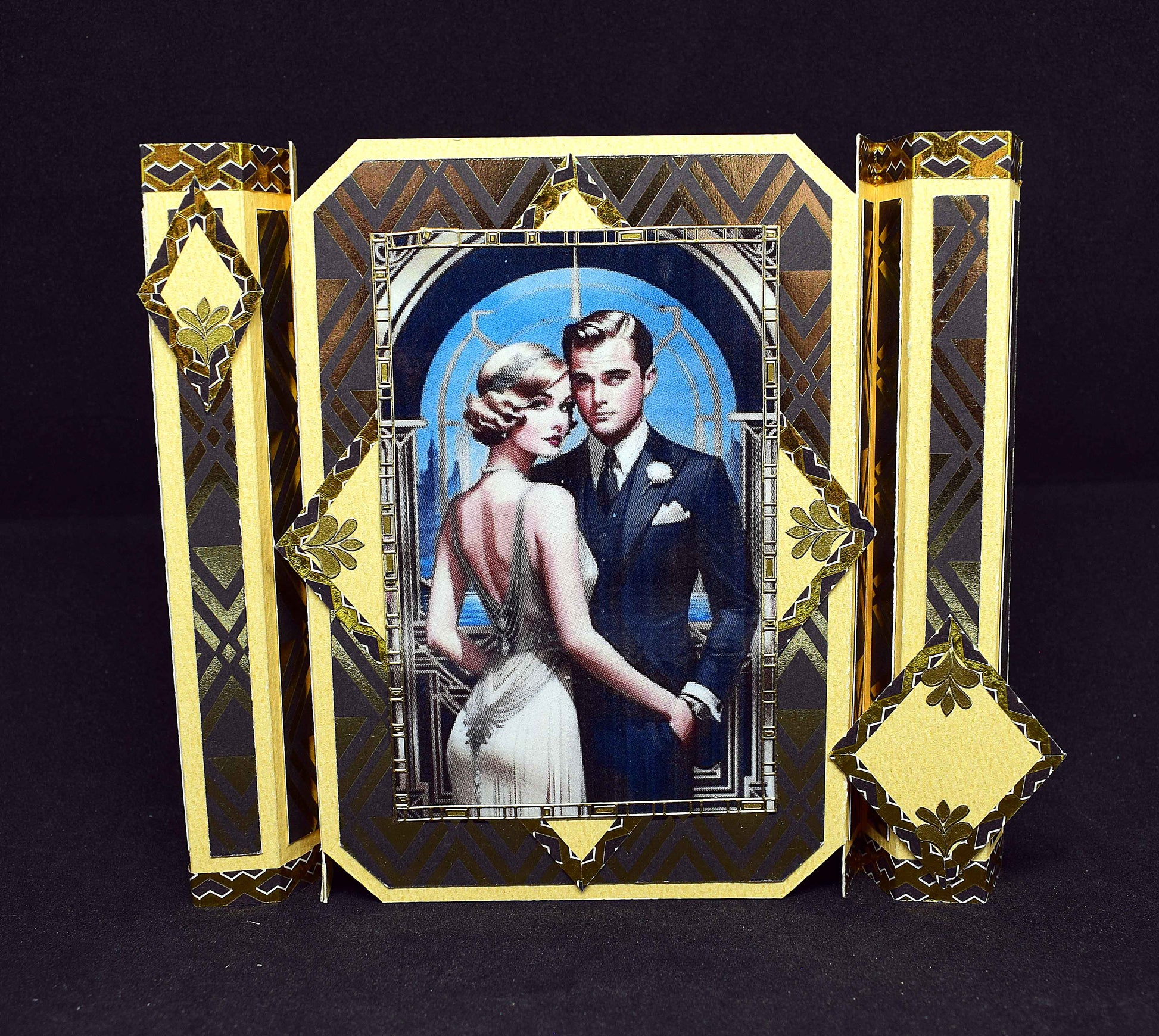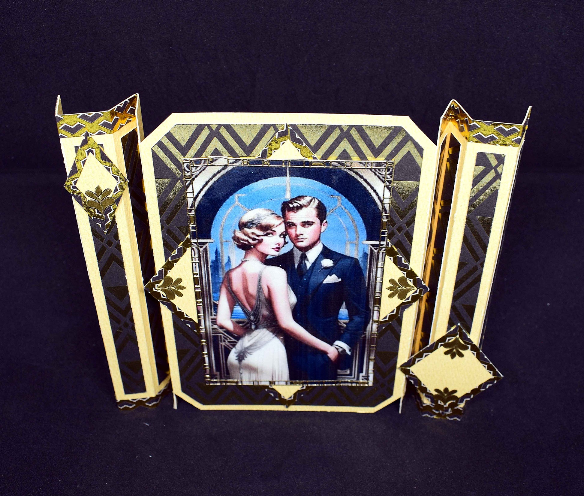 Carte Art Déco couple 3D – carte élégante style années 20 – création géométrique artisanale unique