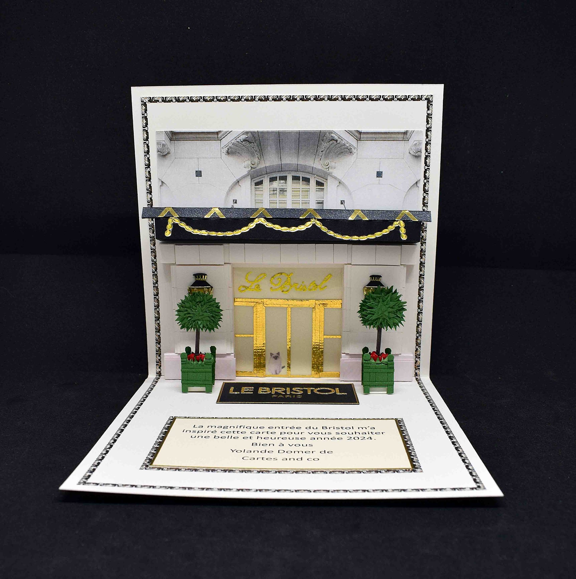Carte de voeux en pop up motifsentrée du palace "le Bristol"