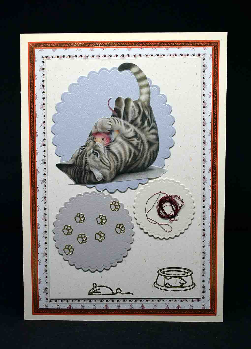 Carte pour anniversaire en 3D aux motifs chat jouant avec une peluche souris