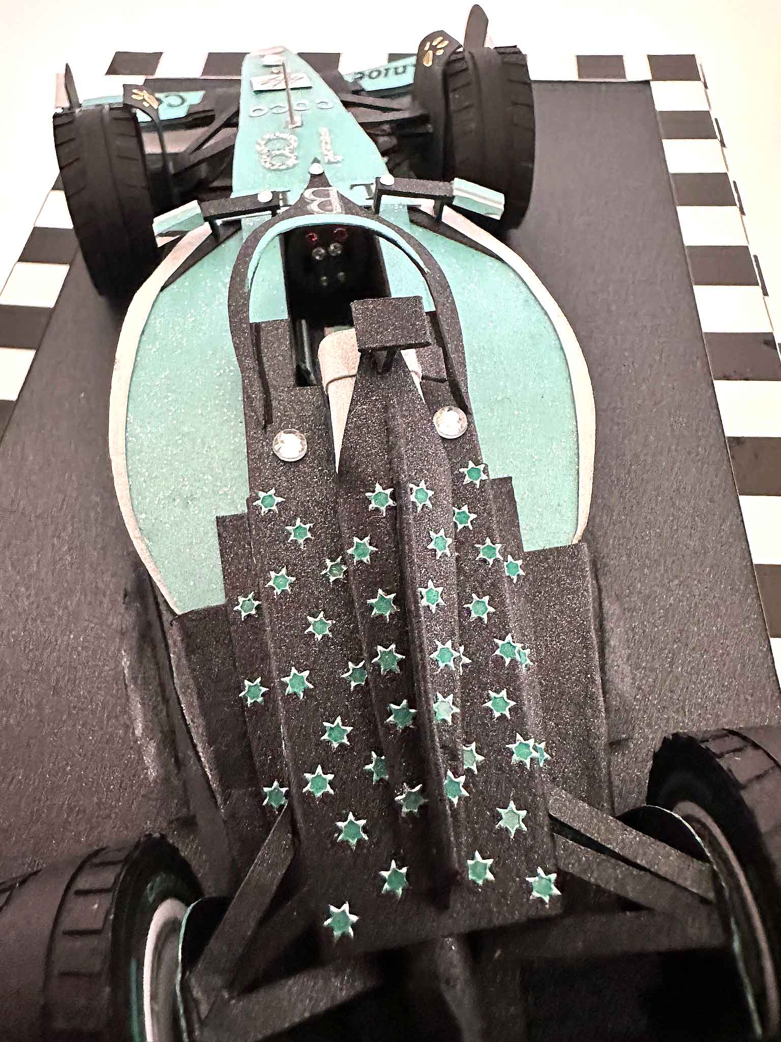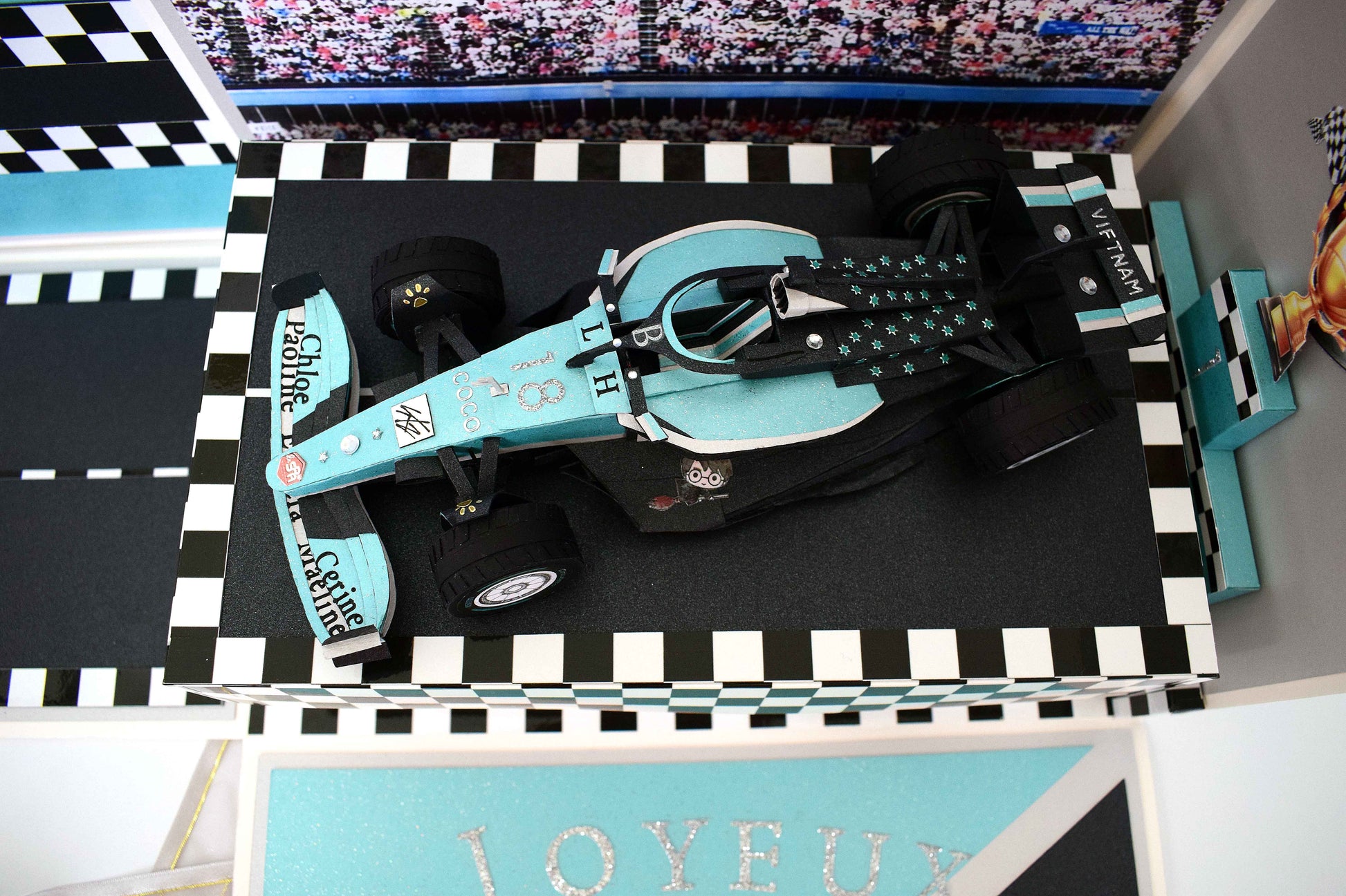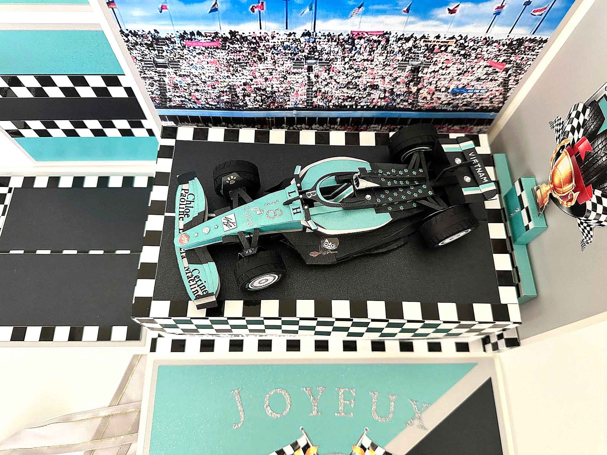 Cette maquette de Formule 1 est entièrement réalisée à la main et personnalisée selon vos envies.