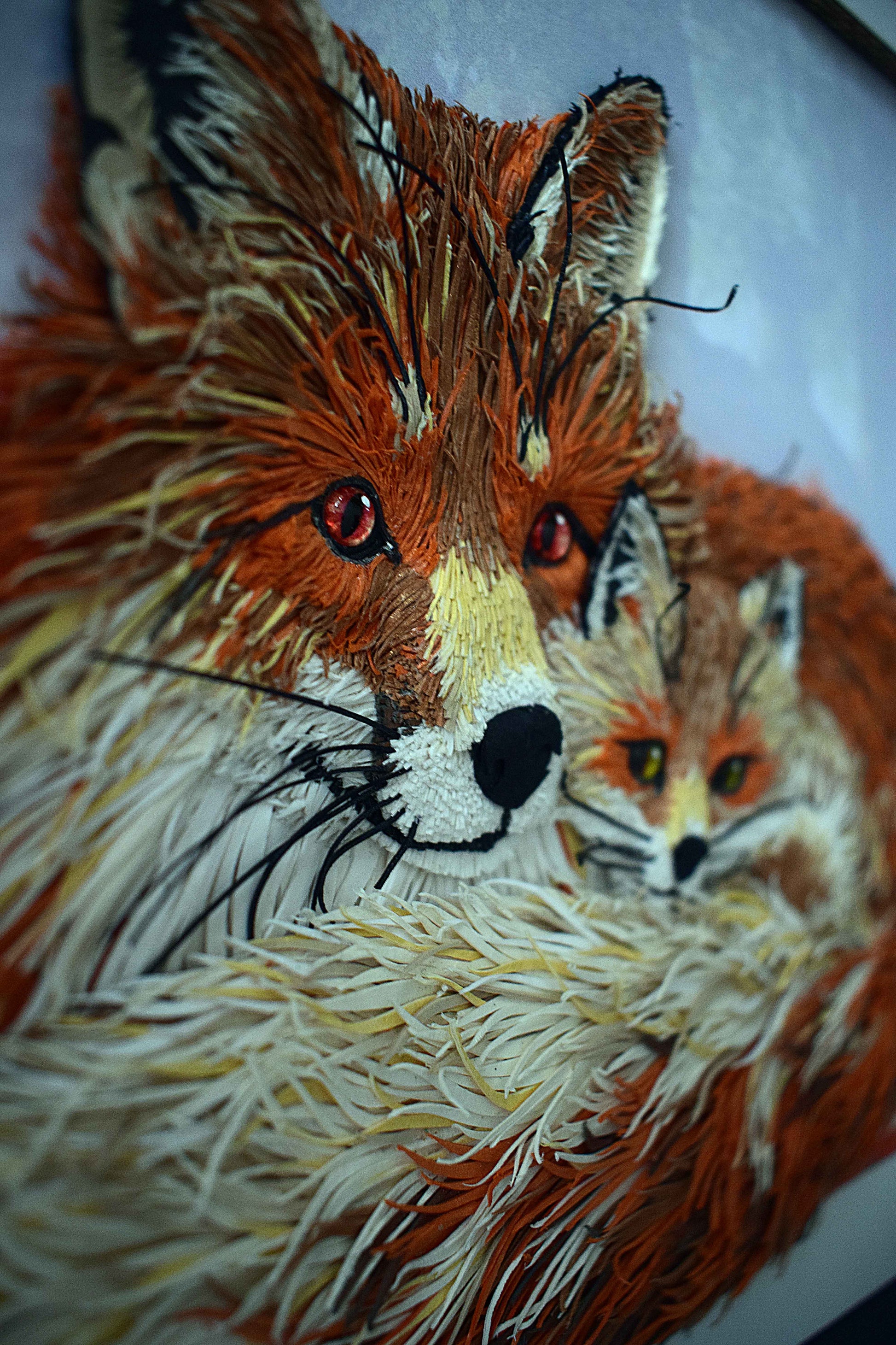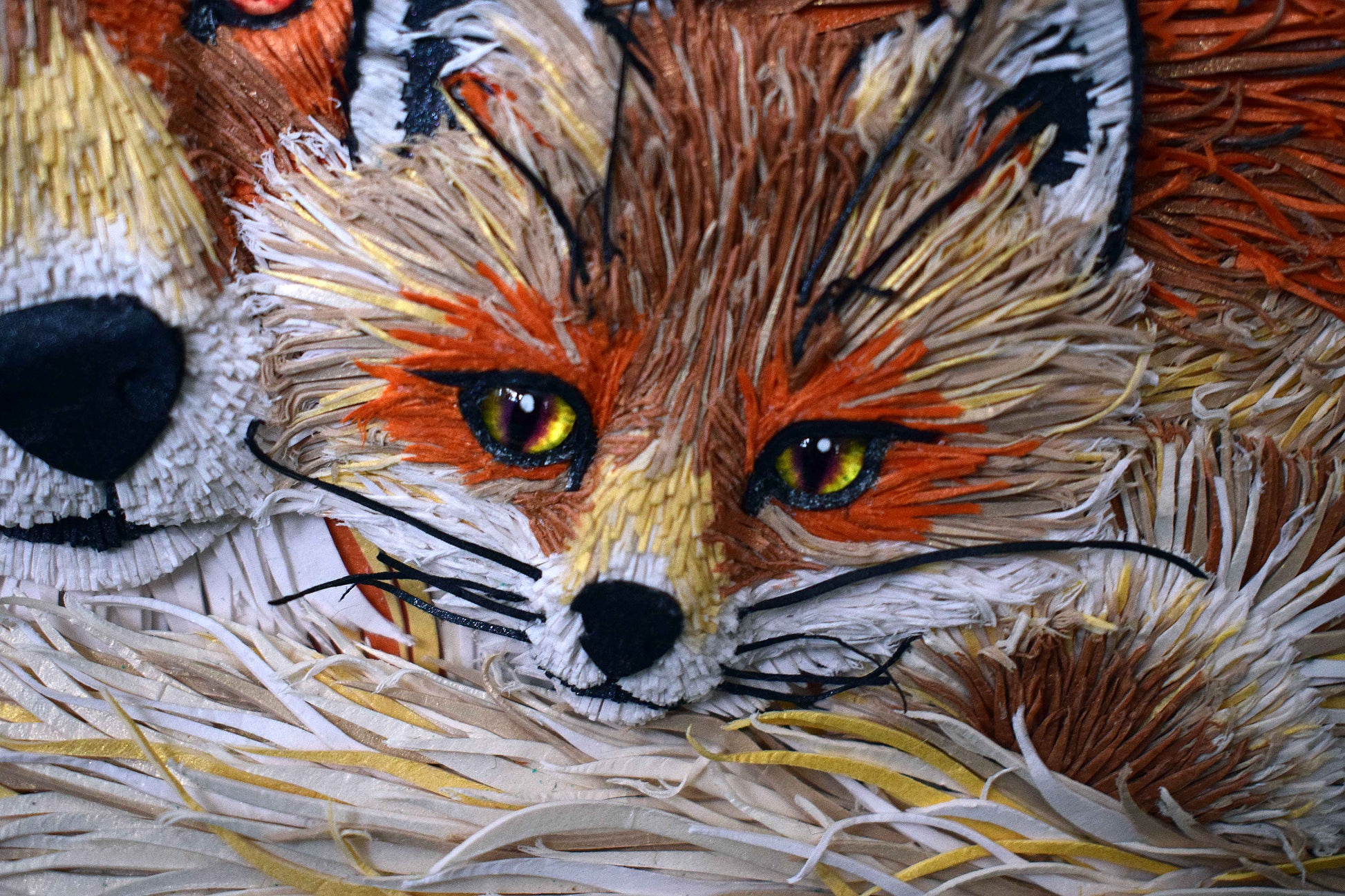 Tableau renard 3D en papier – tableau animalier fait main (pièce unique)
