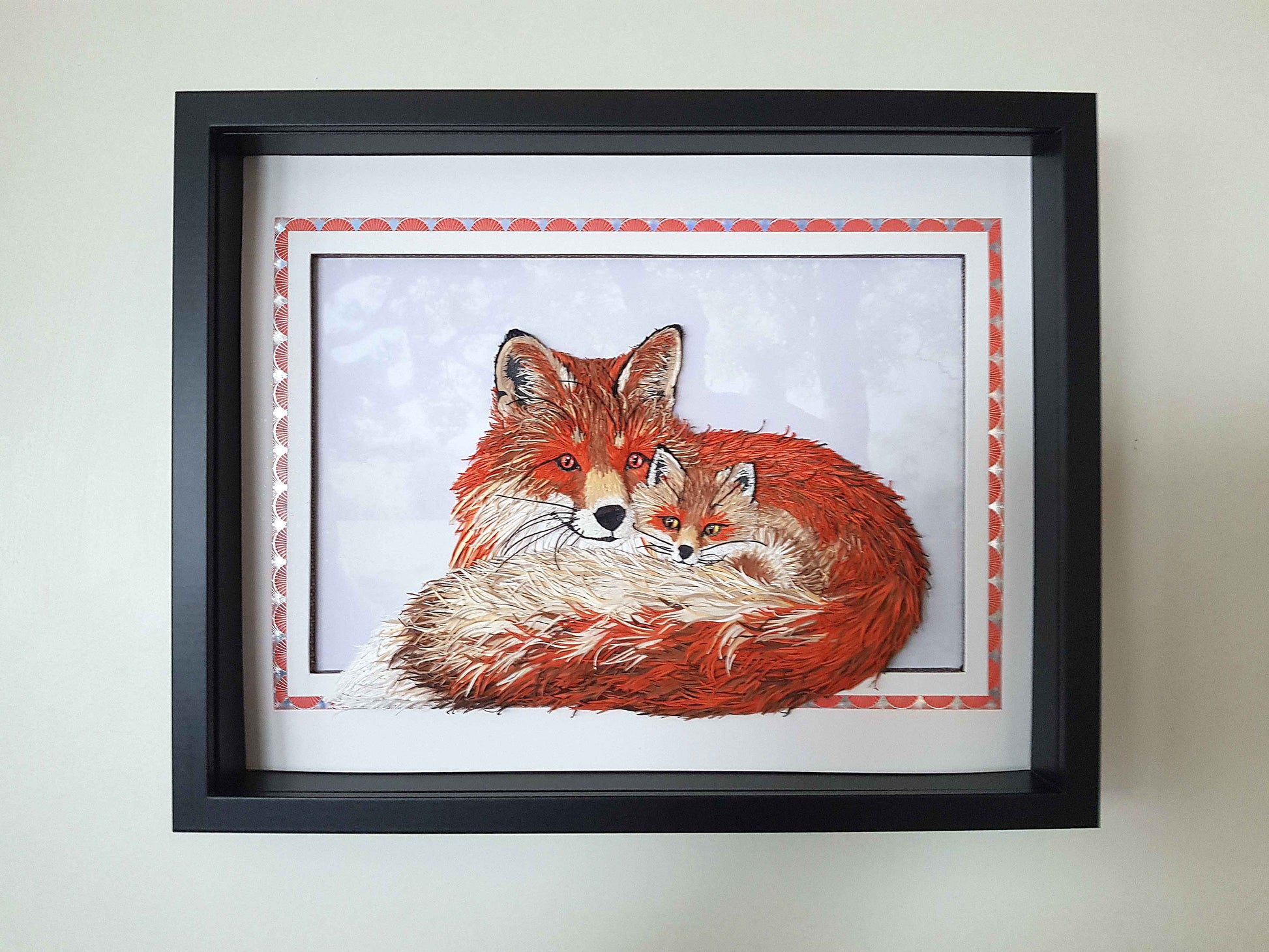 Ce cadre met en scène une renarde et son petit, réalisés entièrement à la main en sculpture papier 3D. Une œuvre délicate qui apporte une touche chaleureuse et poétique à votre intérieur.
