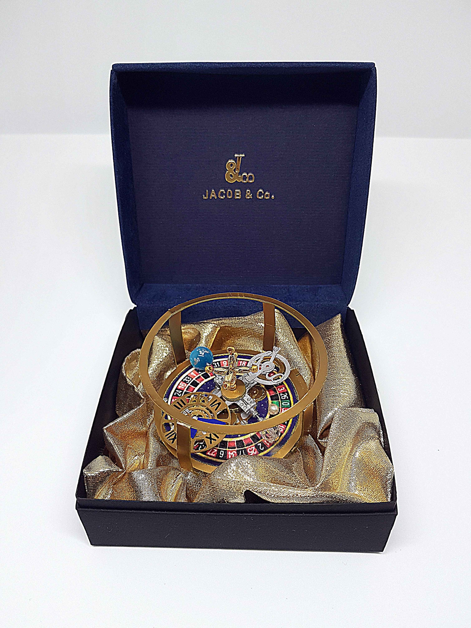 Boite et montre inspirées d'une montre jacob and co astronomia casino réalisé pour la boite, dans du papier velours bleu et stickers doré et pour la montre, dans du papier doré, argenté et bleu. Agrémentée de différentes perles