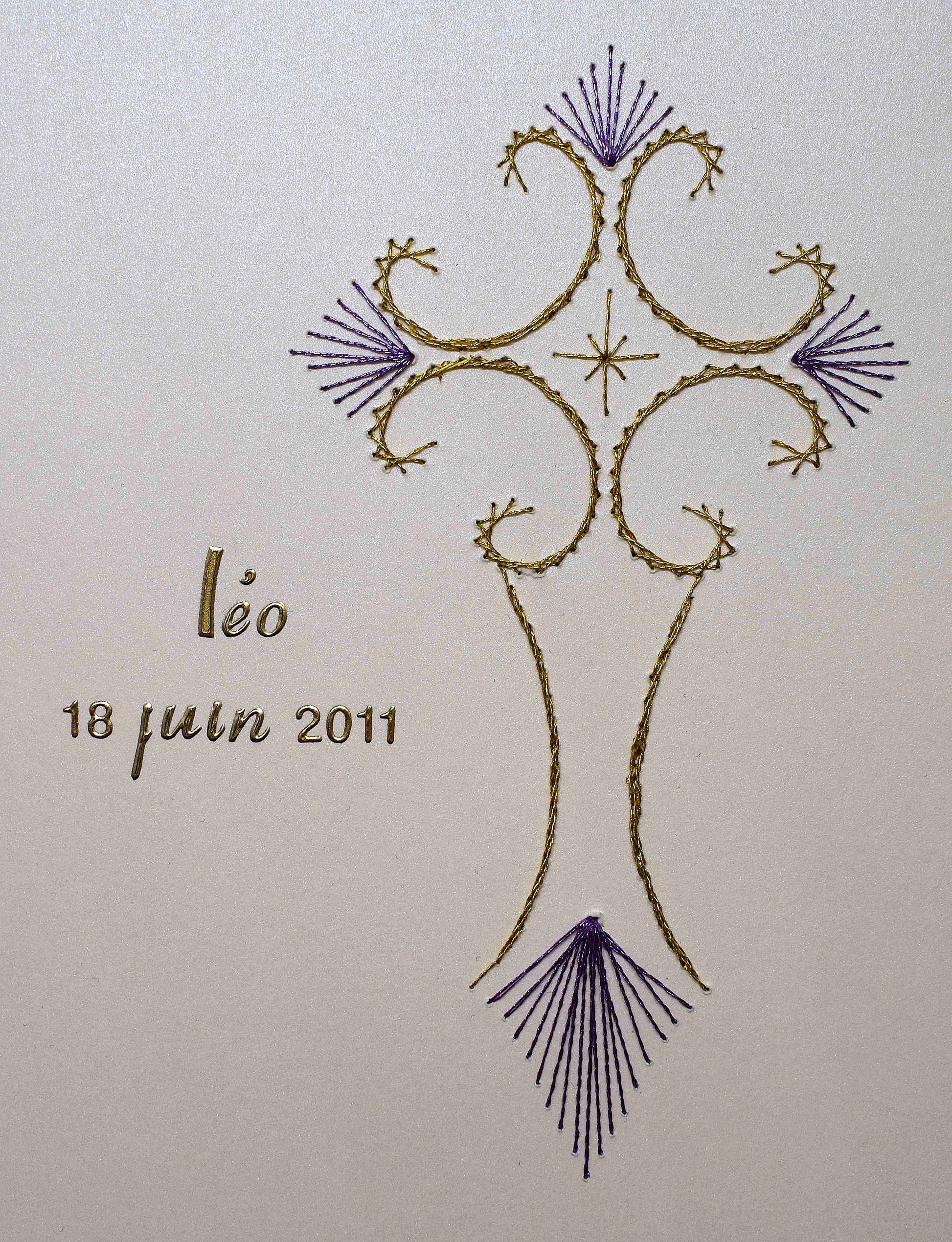 Carte de communion en relief 3D – Carte croix brodée personnalisable – Création artisanale