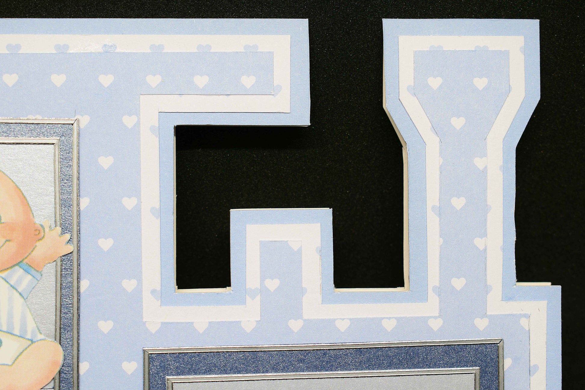 La carte est confectionnée en papier blanc et bleu irisé sans acide, délicatement décorée, pour un rendu tendre et élégant.