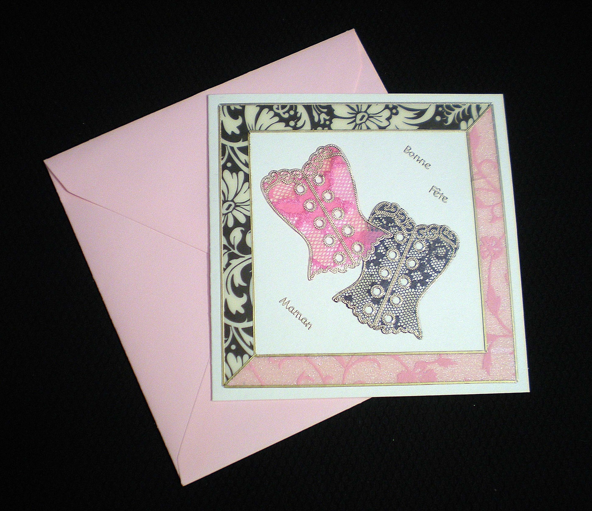 Carte Fête des mères 3D "corsets" - création artisanale élégante et féminine