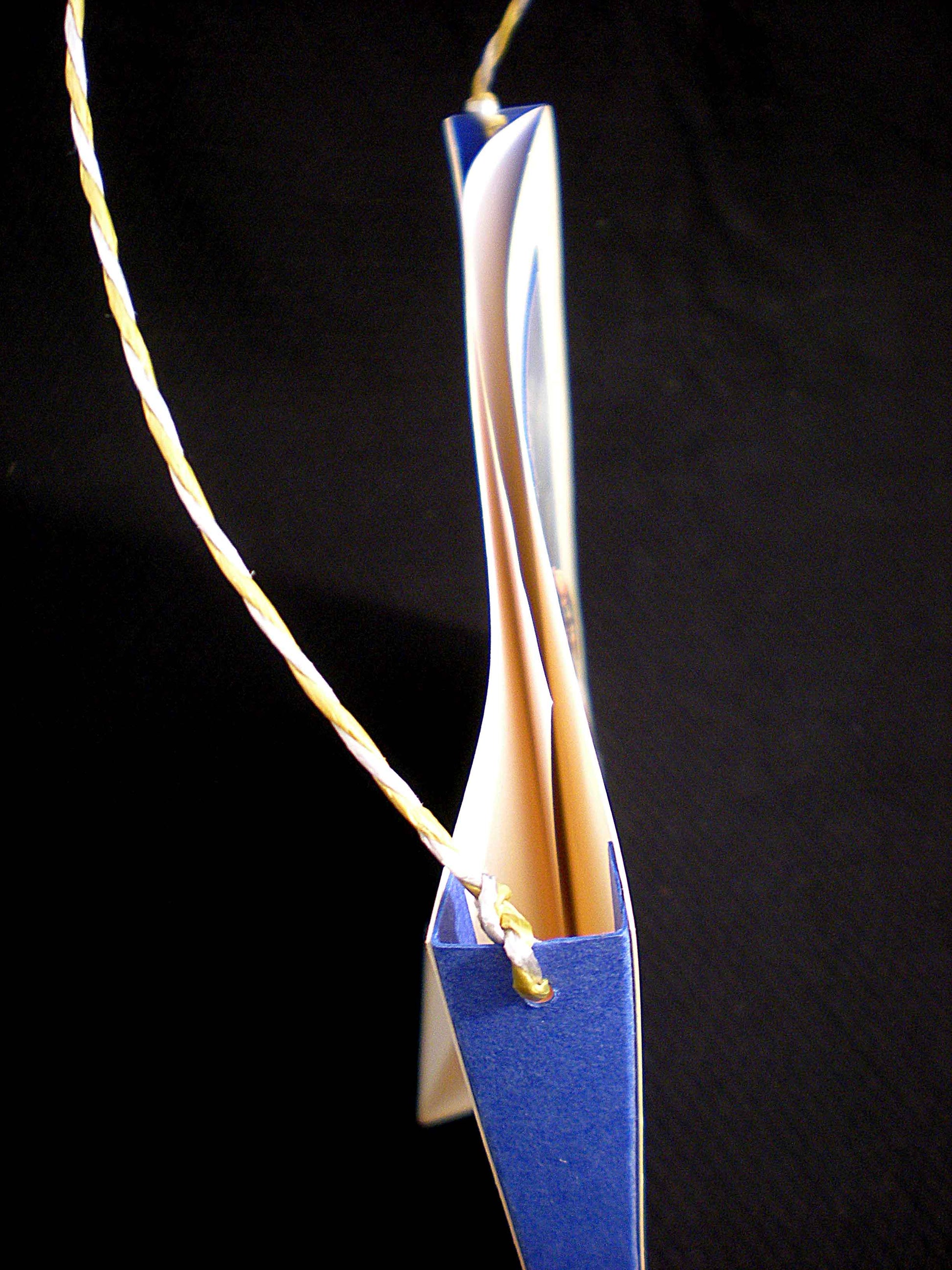 Carte sac d'anniversaire réalisée dans du papier crème irisé pailleté et bleu.