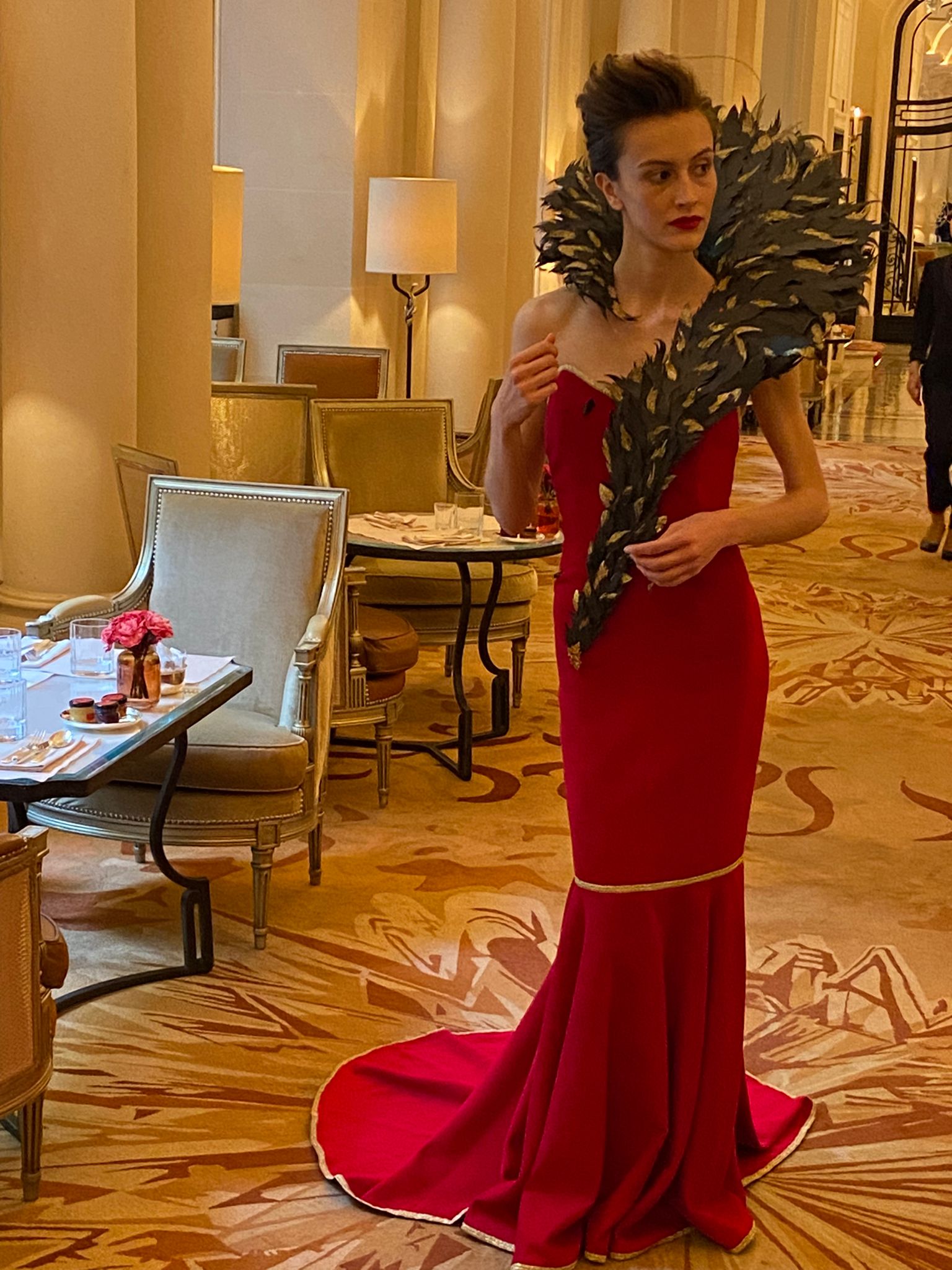 Création haute couture en papier – col plumes fait main – pièce artistique unique