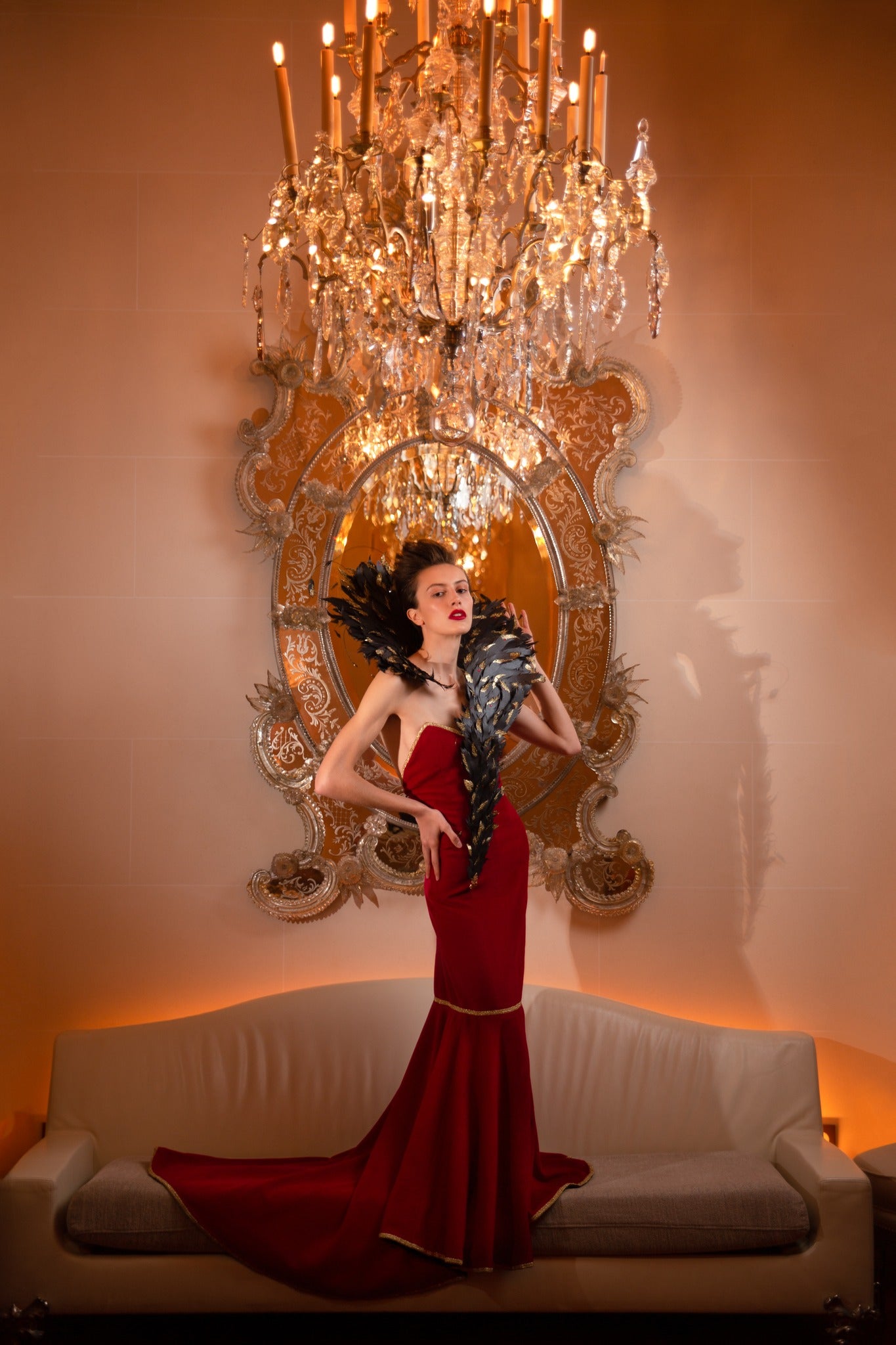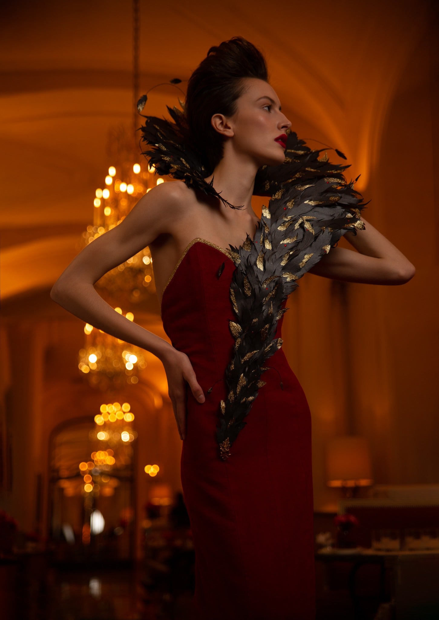 Chaque plume est façonnée, pailletée et décorée une à une, offrant un rendu léger, élégant et spectaculaire.