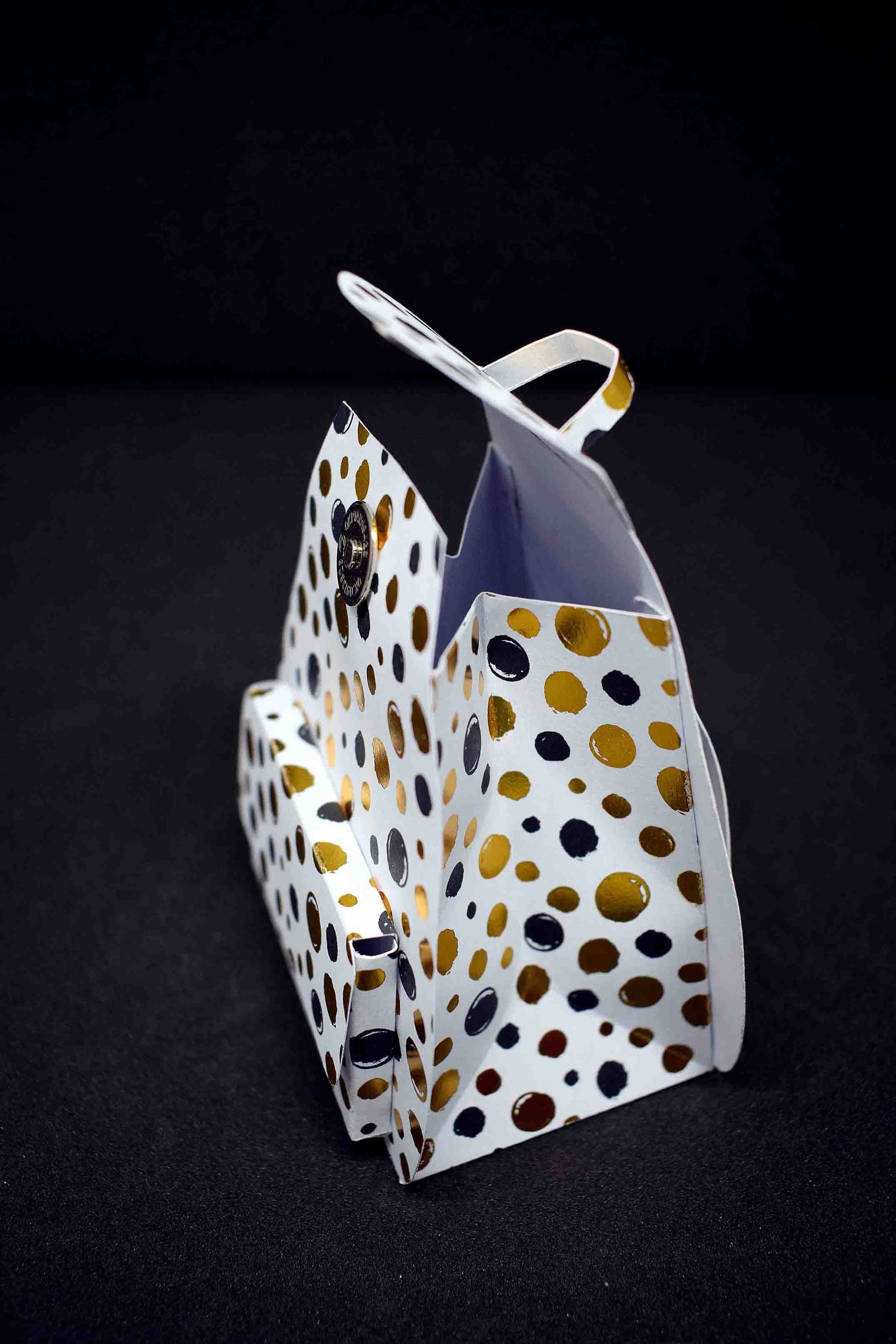 Petit sac à cadeau artisanal blanc à pois dorés - boite surprise élégante personnalisable