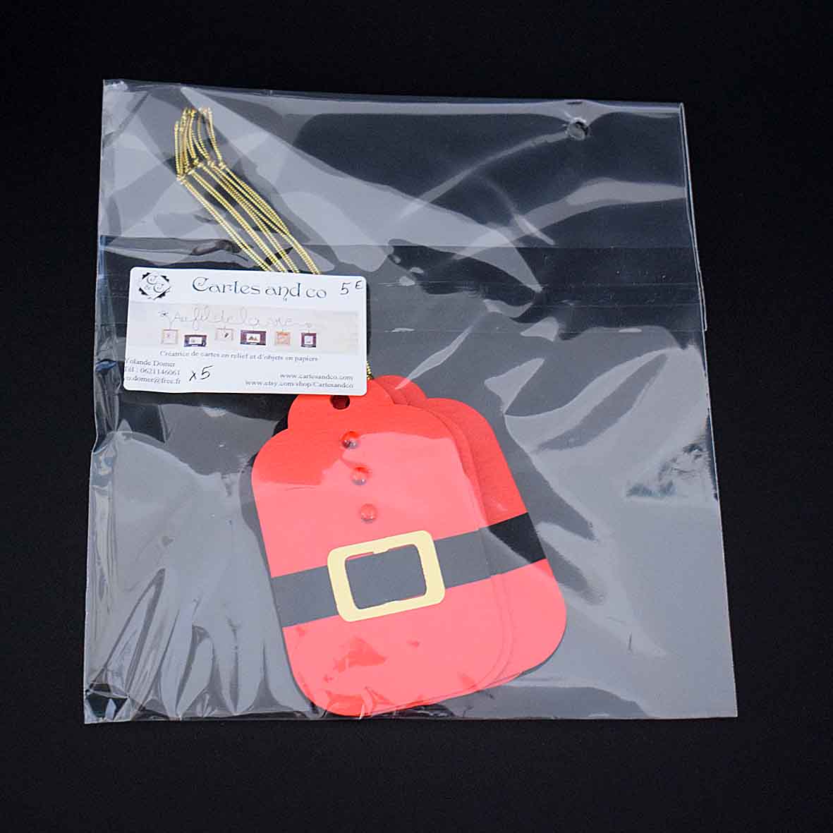 Étiquettes cadeaux Noël pére noêl en relief – lot de 5 étiquettes artisanales personnalisables
